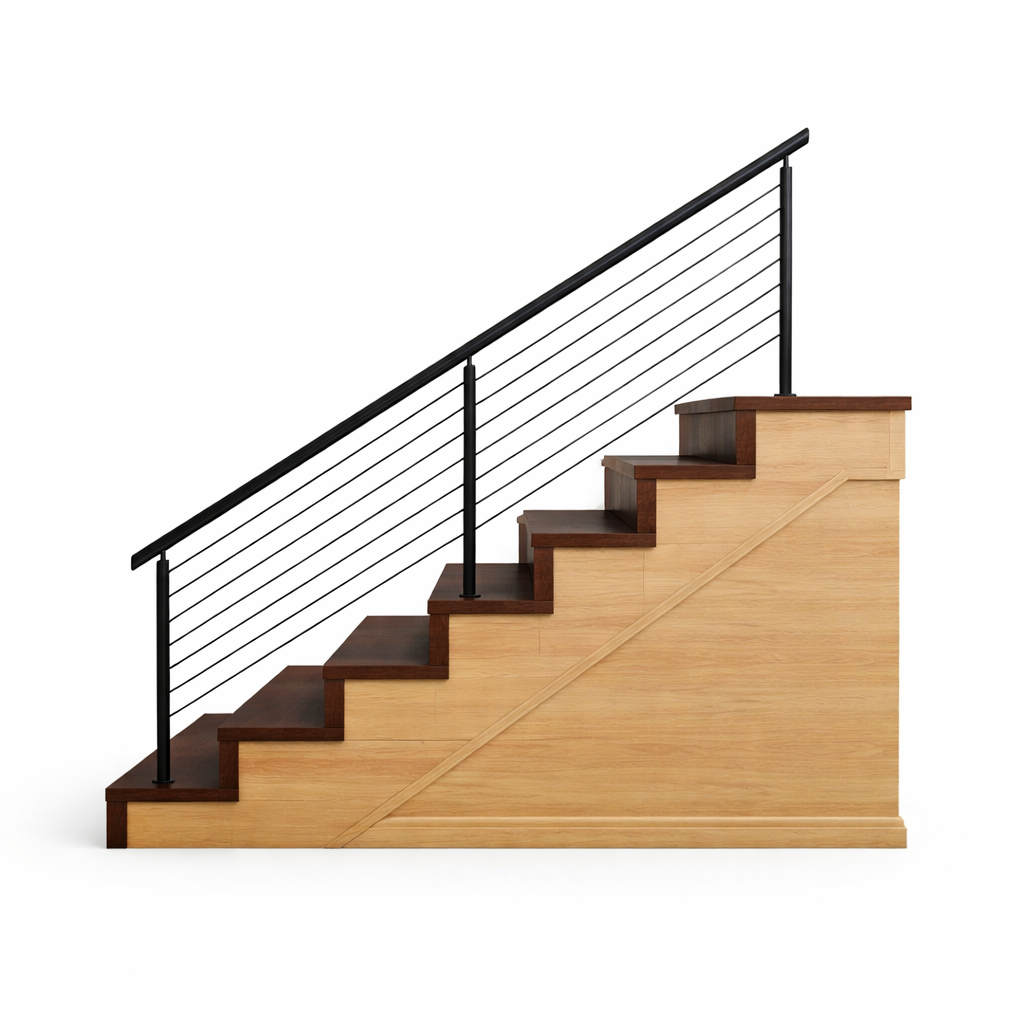 This 8’ black metal cable railing system with a matching black metal top rail offers a sleek, modern appearance combined with long-term durability. Ideal for decks, stairs, balconies, and interior spaces, the system is engineered for strength and reliability, featuring cable tension strength up to 3,000 lbs and a corrosion-resistant finish suitable for both indoor and outdoor use.